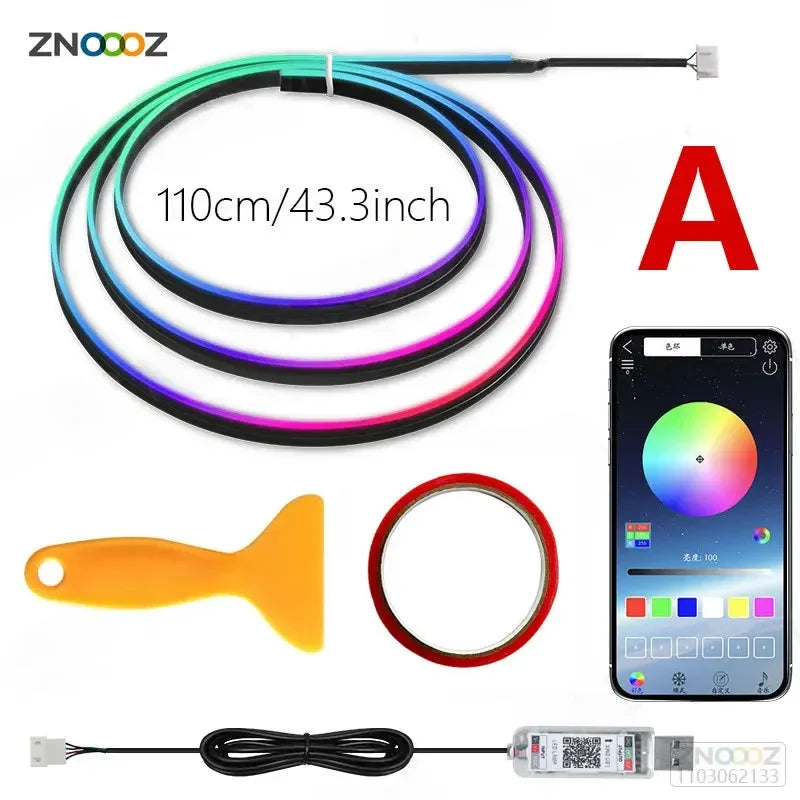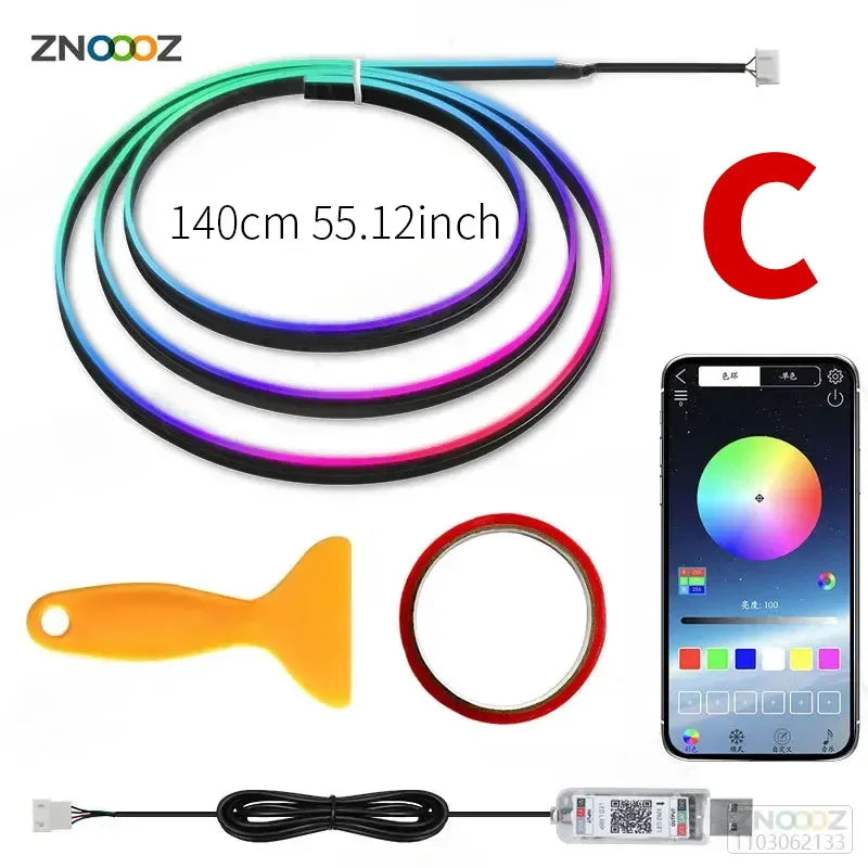 Elevate your car’s interior with the ZNOOOZ 140cm RGB LED Ambient Light Strip, designed for Tesla Model 3, Y, S, X and universal fit for other vehicles.
