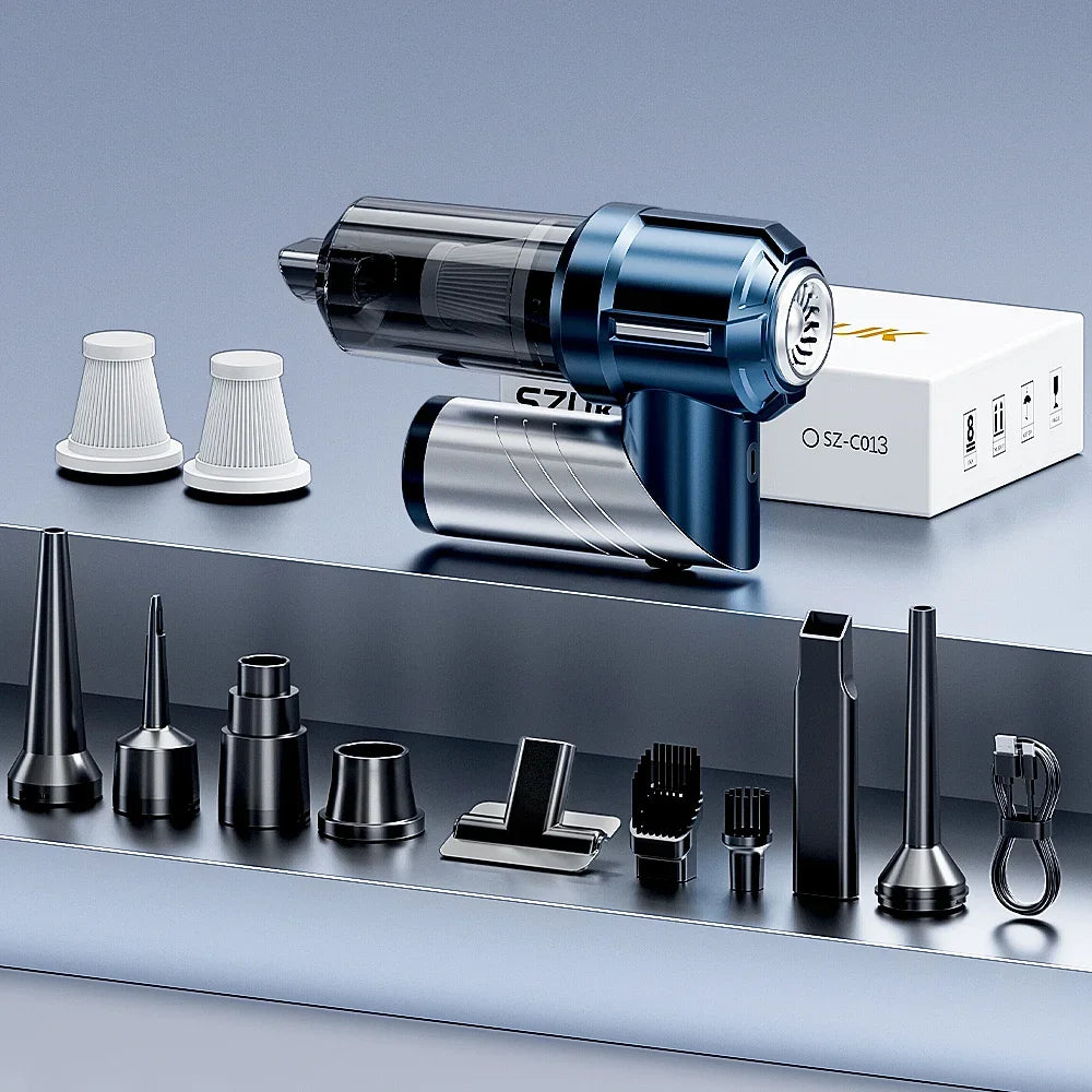 The SZUK Portable Wireless Car Vacuum Cleaner is a powerful, handheld mini cleaner designed for both car and home use. With a 100W high-speed brushless motor, three suction levels (up to 15KPa), and a washable HEPA filter, it tackles dirt, dust, pet hair, and debris with ease.